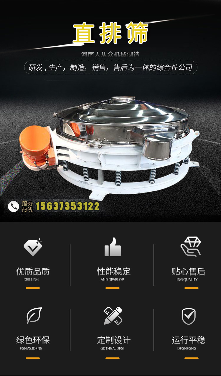 直排篩是以單個(gè)或兩個(gè)振動(dòng)電機(jī)作為激振源,物料在振動(dòng)源的作用下以橢圓軌跡運(yùn)行,可使物料快速通過篩網(wǎng),進(jìn)料口和出料口在同一垂直方向,極大提高了篩分效率,最終完成篩分過程。