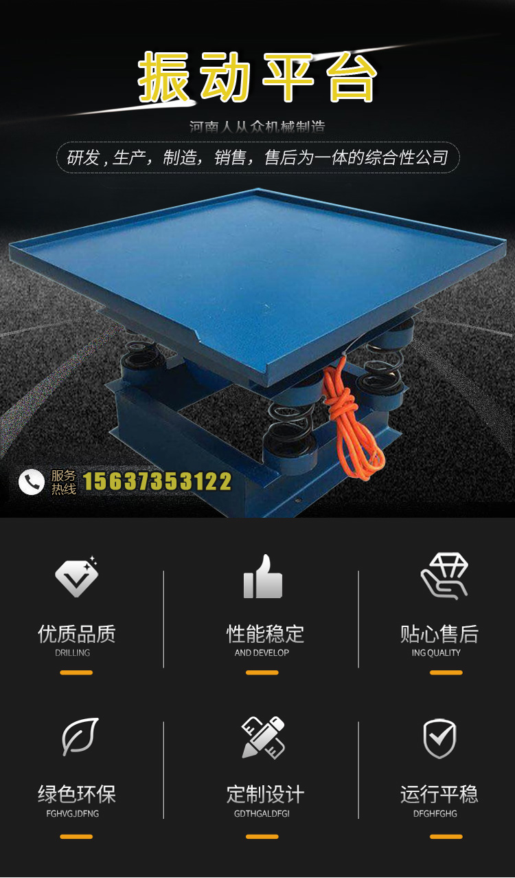 混凝土振實臺用于混凝土泥土砂漿等物料的振實,功率大,噪音低,功率可調,操作簡單,帶有自鎖緊功能,可保證在生產線準確定位。