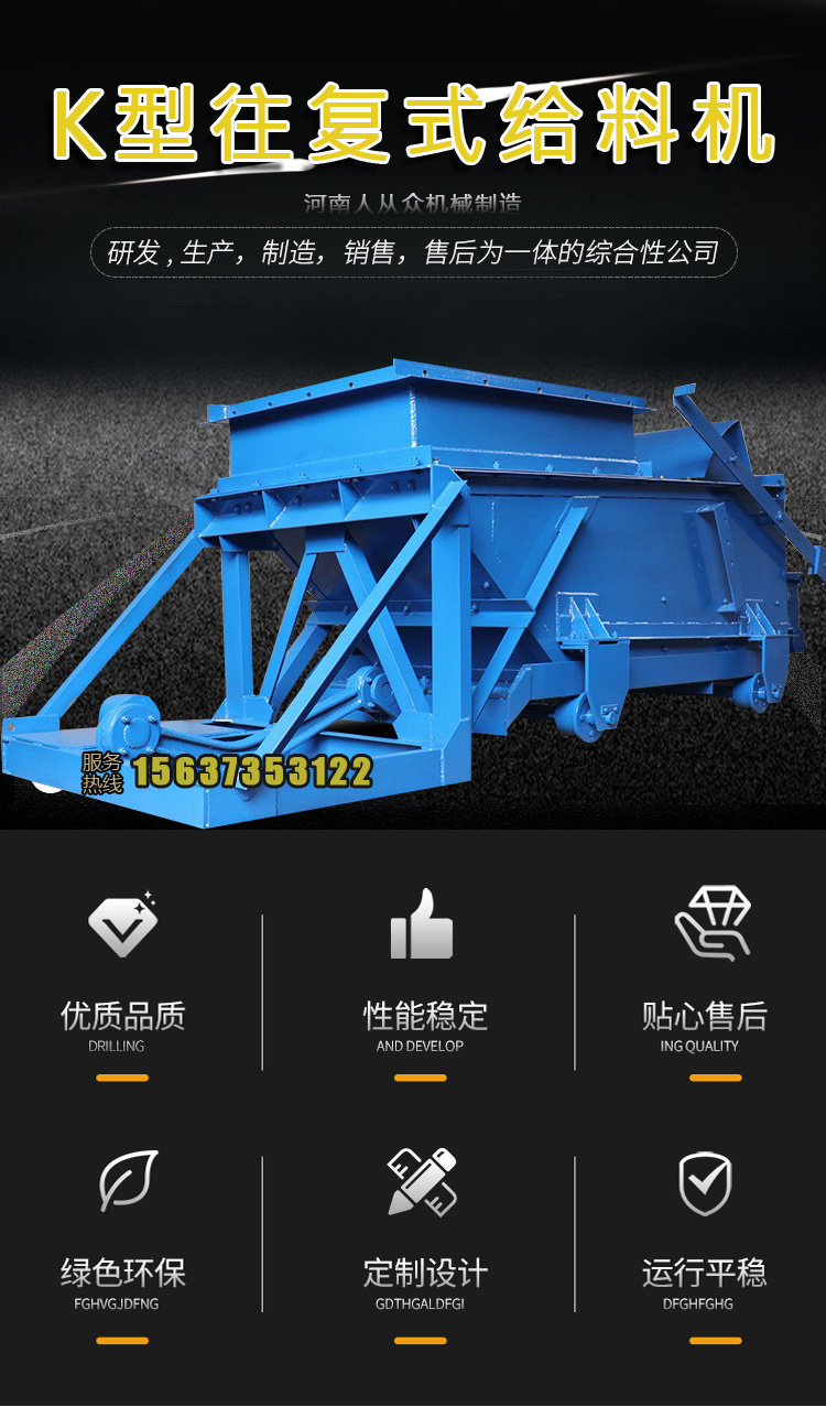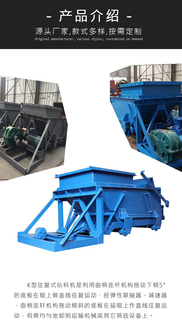 k型往復式給料機適用于煤或粘性小的松散狀顆粒物料的輸送、剛性耐磨,可持續(xù)均勻的將物料輸送到其他輸送或篩分設備中去,多用于煤廠、礦山行業(yè)中。