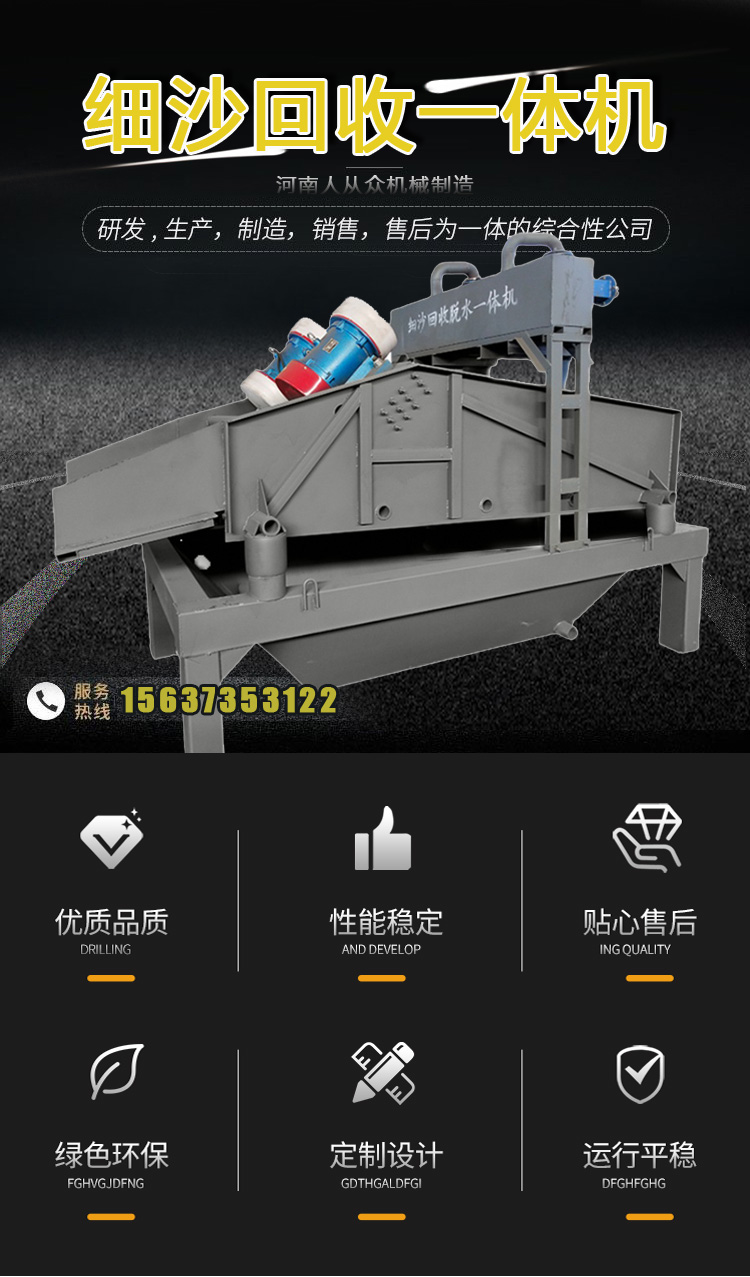 細(xì)砂回收脫水一體機(jī)可用于砂石料礦山的洗砂、選礦廠的尾礦干排等,其由電機(jī)、渣漿泵、旋流器zkr直線振動篩、清洗槽、回流箱等組成,處理能力一般為10-100噸/小時,可根據(jù)處理能力定制生產(chǎn).