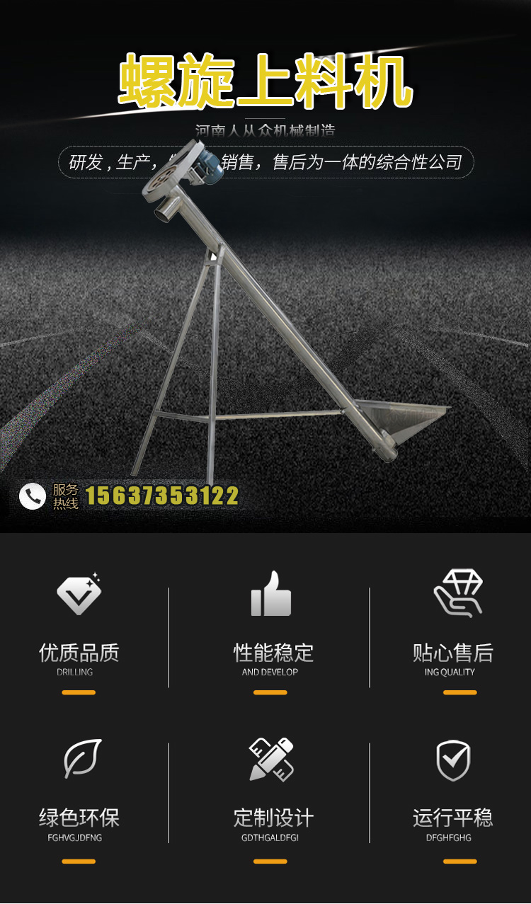 螺旋上料機(jī)一般常用于輸送顆粒狀粉末材料。適用于化工、食品、建材、包裝等行業(yè)對(duì)喂料要求較高的設(shè)備。它具有速度快、精度高、應(yīng)用廣的特點(diǎn)。